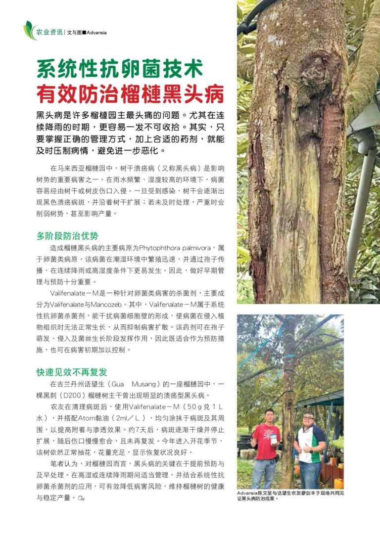 In our latest issue of National Durian Magazine, we introduce Advansia’s A-Taigo, a specialized amino acid complex designed to tackle persistent moss issues. “The Ongoing Challenge of Moss and Innovative Solutions” highlights sustainable practices that have proven successful for farmers in Sungai Klau and Bentong.